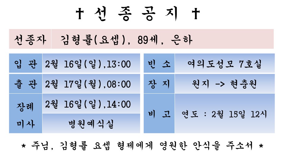 故 김형률 요셉 페이지 정보 작성자 admin 댓글 0건 조회 1,243회 작성일 25-02-15 09:18 본문 1 목록 이전글故 김희신 로사 25.02.16 다음글故 서금선 비오 25.02.12